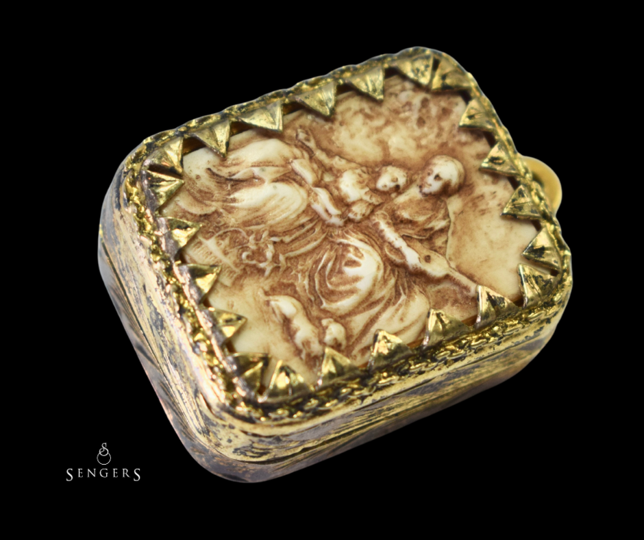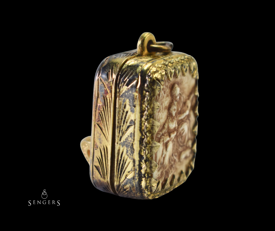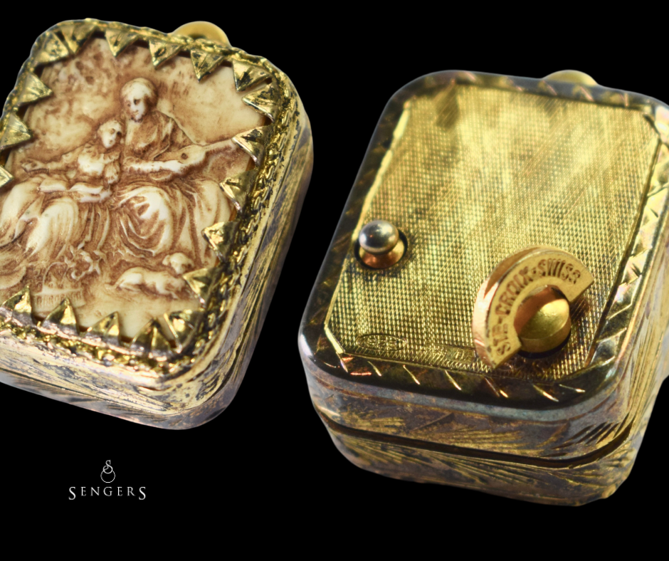 Sieraden zijn vaak verbonden met herinneringen. Ze markeren unieke momenten, worden cadeau gegeven, doorgegeven of zelfs jarenlang bewaard. Deze antieke goud op zilveren hanger laat goed zien hoe een sieraad meer kan zijn dan alleen een puur decoratief object. Met een romantische voorstelling en een prachtig Zwitsers speelwerk brengt deze hanger heel verschillende werelden samen: de wereld van sieraden, techniek en muziek.