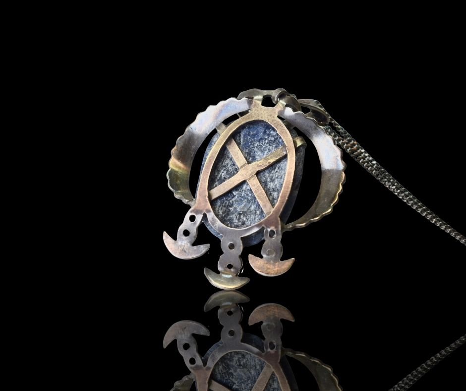 Bijzondere zilveren hanger met een handgesneden blauwe sodaliet amulet in de vorm van een gezicht. Dit stuk is vervaardigd uit de traditie van het Azteekse moedervolk, de Olmeken, en draagt daarmee een rijke culturele betekenis. Gecombineerd met een zilveren collier een opvallend en historisch geladen sieraad.