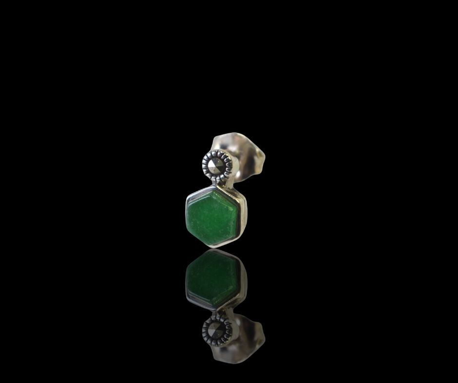 Oorknoppen van zilver, gezet met jade. Klein van formaat maar met een frisse kleur die meteen opvalt. Een veelzijdig paar dat zowel dagelijks als feestelijk gedragen kan worden.