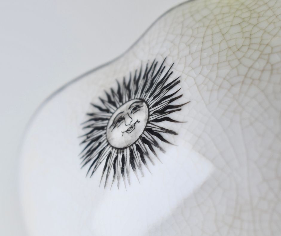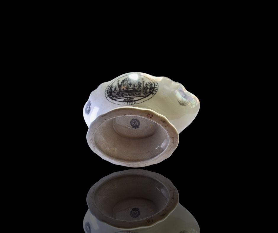 Een ovale schaal, versierd met de geheimzinnige symboliek van de vrijmetselarij. Het merkteken van William Love, uit 1895, (gemerkt: WL-1895) zorgt ervoor dat je precies weet wáár en wanneer dit bijzondere stuk is ontstaan. Een schaal die niet alleen mooi is, maar ook mysterie uitstraalt en vragen oproept.