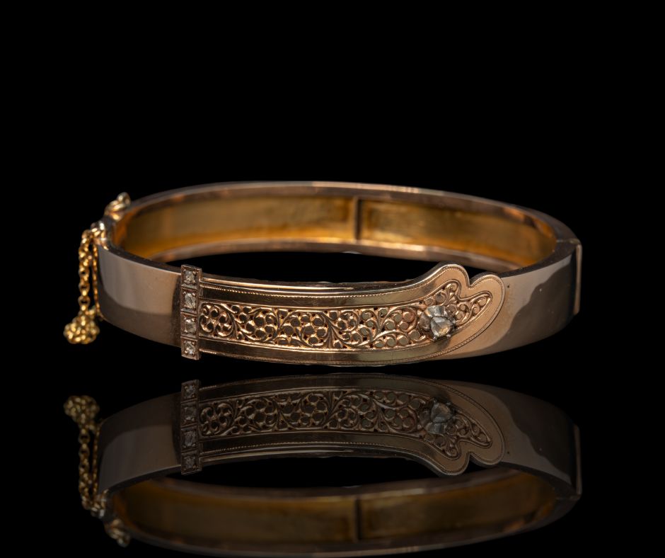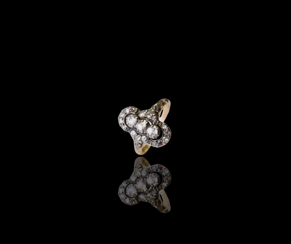 Antieke sieraden bevatten vaak roos geslepen diamanten. Deze stenen zijn platter en hebben een zachte glans die prachtig oplicht bij zacht kaarslicht. Door hun vorm vangen deze diamanten het licht op een zachtere manier dan moderne slijpvormen.